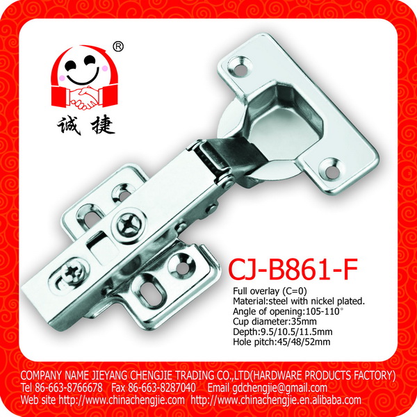 產品描述: 開門角度:105-110° 鉸杯尺寸:35mm 鉸杯深度:9.5/10.5/11.5mm 鉸杯孔距:45/48/52mm 適用門板厚度:14-24mm 門板K距離:3-7mm 性能:深度調節(jié)±2毫米 高度調節(jié)±2毫米 蓋門調節(jié)±4毫米 包裝細節(jié): 1)散裝:200只/箱,250只/箱,300只/箱 2)只含螺絲/袋裝,100只/箱 3)彩盒包裝/根據客戶需求 更多產品細節(jié)圖: 產品單價,具體信息,歡迎隨時咨詢我們!