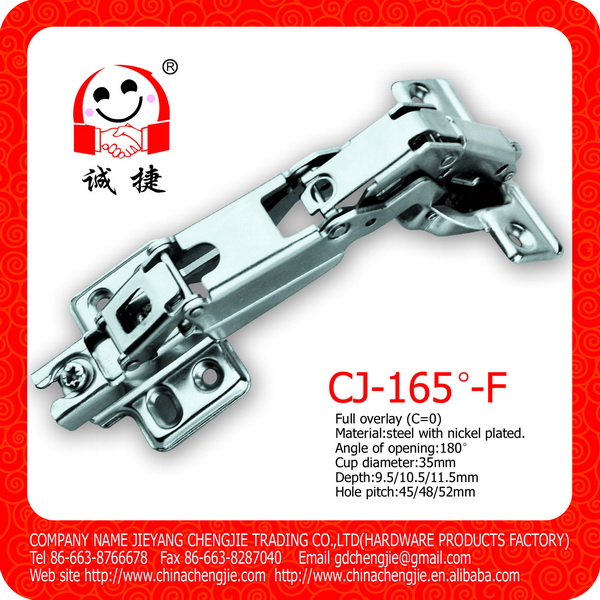 產(chǎn)品描述: 開門角度:165° 鉸杯尺寸:35mm 鉸杯深度:10.5mm 鉸杯孔距:45/48/52mm 適用門板厚度:14-24mm 門板K距離:3-7mm 性能:深度調(diào)節(jié)±2毫米 高度調(diào)節(jié)±2毫米 蓋門調(diào)節(jié)±4毫米 包裝細節(jié): 1)散裝:200只/箱,250只/箱,300只/箱 2)只含螺絲/袋裝,100只/箱 3)彩盒包裝/根據(jù)客戶需求 更多產(chǎn)品細節(jié)圖: 產(chǎn)品單價,具體信息,歡迎隨時咨詢我們!
